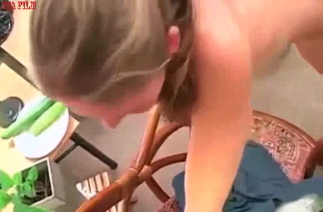 Молодую девку трахают огурцом в задницу
