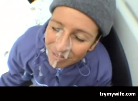 Шоколадка сделалас воему парню минет зимним морозным днем прямо на улице и облила свое личико горячей спермой.