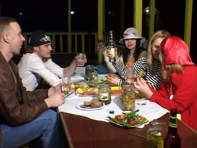 Полнометражный порно фильм Советское порно 2 часть | Soviet porn 2 | Sovjet porno 2 (2006). Приехав оторваться на базу отдыха, большая компания устраивает большую пьянку по поводу своего заезда и когда все знатно набрались, блондинка решается на стриптиз на столе и получает за это еще пол стакана водки за храбрость. Парни снимают пьяную девушку со стола и несут в машину трахать ее, а за столом остаются еще две красивые девушки, которые не переживая, что их могут заметить, начинают целоваться и ласкать друг дружку. Когда вся кампания начинает страдать от похмелья, все решают отправиться на прогулку на катере по реке, чтобы дышать свежим воздухом, но и на судне нашлись желающие потрахаться всем вместе.Вернувшись на базу девушки дают своим парням возможность отдохнуть и начинают баловаться резиновыми членами.