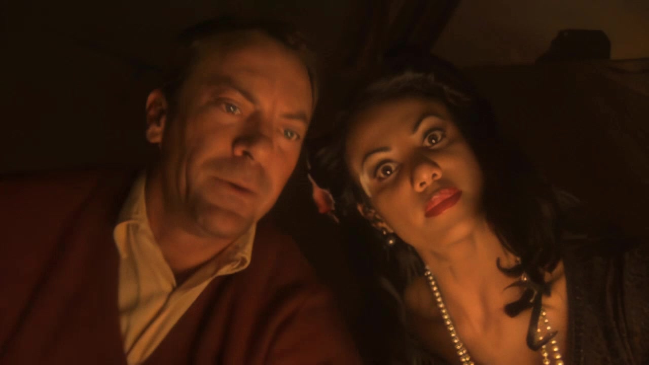 Аманда отмечает день рождения вдвоём со своим парнем Чарли. После бурного секса она засыпает, а посреди ночи просыпается уже одна, будто Чарли вообще не существовало. Она заходит в ванную, и тут начинаются странности: мигающий свет, змеи в ванне, какие-то тревожные образы. Может, перебрала с алкоголем, а может, торт был не первой свежести, короче, ничего не понятно. Очнувшись, Аманда решает, что это был всего лишь дурной сон. Но очень быстро становится ясно, что всё куда хуже. В её квартире появляется чудной тип в красном пиджаке и шляпе, и вместе с ним она переносится в тот же день и в то же место, но ровно на 70 лет назад. Оказывается, раньше здесь жила странная парочка. Они заманивали людей к себе, занимались с ними сексом, а напоследок предлагали выпить отравленного чайку, чтобы скормить жертв змеям, которые обитали в шкафу. Аманда, конечно, считает происходящее полным бредом, но всё выглядит слишком реалистично, и вскоре ей самой приходится стать частью этого дикого спектакля. Фильм, начинавшийся как мрачный психологический триллер, постепенно превращается в откровенно безумный фарс, где то, что должно пугать, в итоге вызывает нервный смех. Оригинальное название: Candelabra. Режиссёр: David Stanley. Студия: Wicked Pictures.